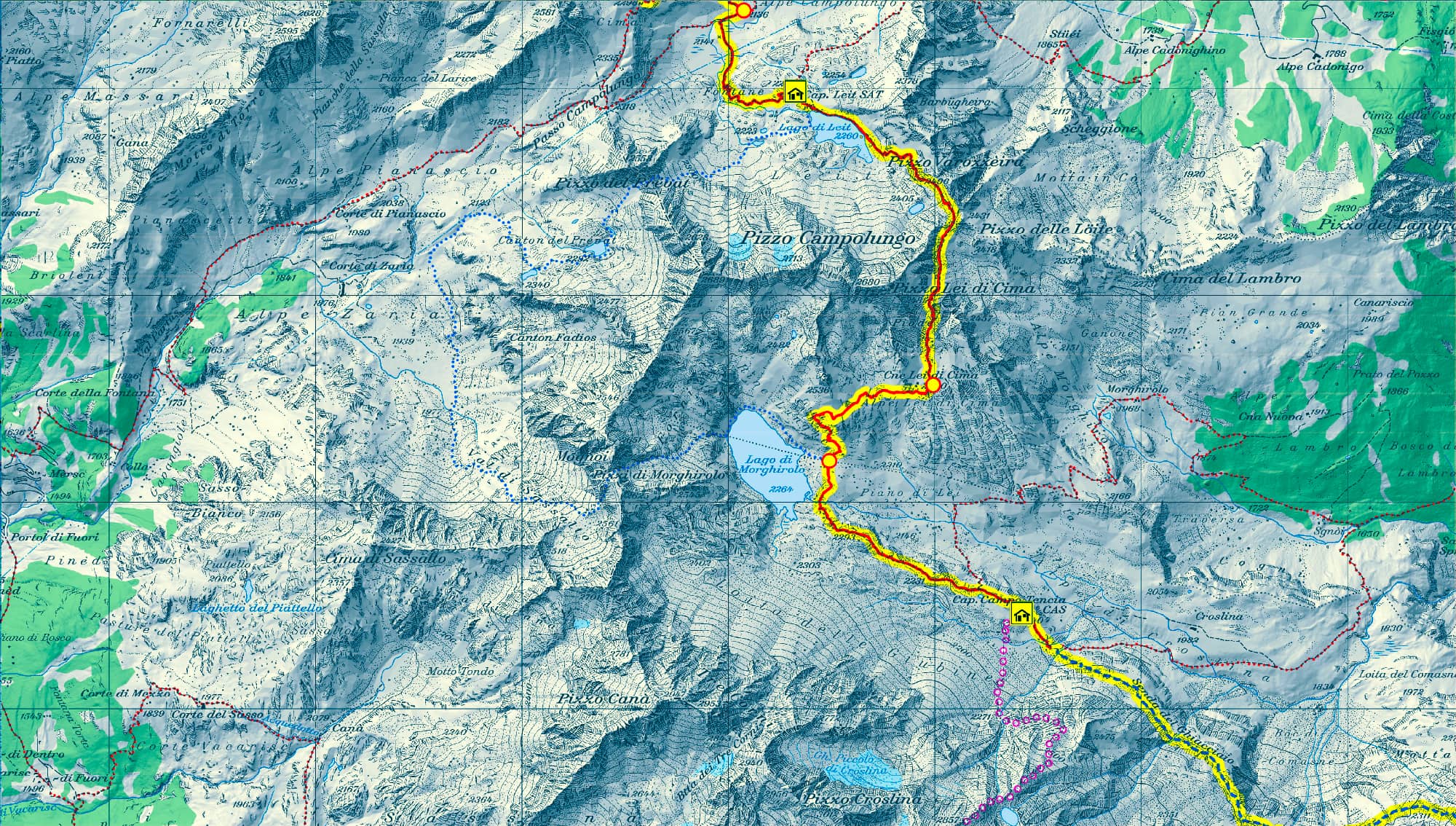 La tappa più breve della traversata permette inediti diversivi: recuperare le forze sulle sponde dell’incantevole Lago Morghirolo; oppure cimentarsi sulla Cresta dei Corni: un itinerario aereo e tecnicamente difficile che dal Passo Morghirolo conduce alla Vetta del Campo Tencia che con i suoi 3'072 m è la più alta montagna interamente su suolo ticinese. La vetta, col suo ghiacciaio, la si può raggiungere anche dal normale itinerario di salita. Naturalmente è anche possibile stare comodamente seduti
